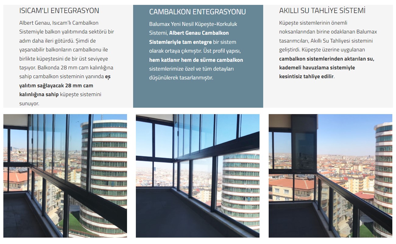 Balumax Küpeşte Korkuluk Sistemi, Türkiye’de tasarlanmış ilk ve tek cambalkon sistemlerine entegre Isıcam’lı küpeşte sistemidir. Isıcam'lı entegre küpeşte sistemi, camlı küpeşte sistemlerinin şıklığını, yalıtımla buluşturmak için tasarlanmıştır.